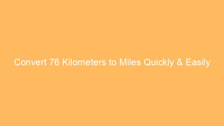 Convert 76 Kilometers to Miles Quickly & Easily 76 kilometers is approximately 47.23 miles. This means if you travel 76 km, you cover about 47.23 miles, which is useful for …